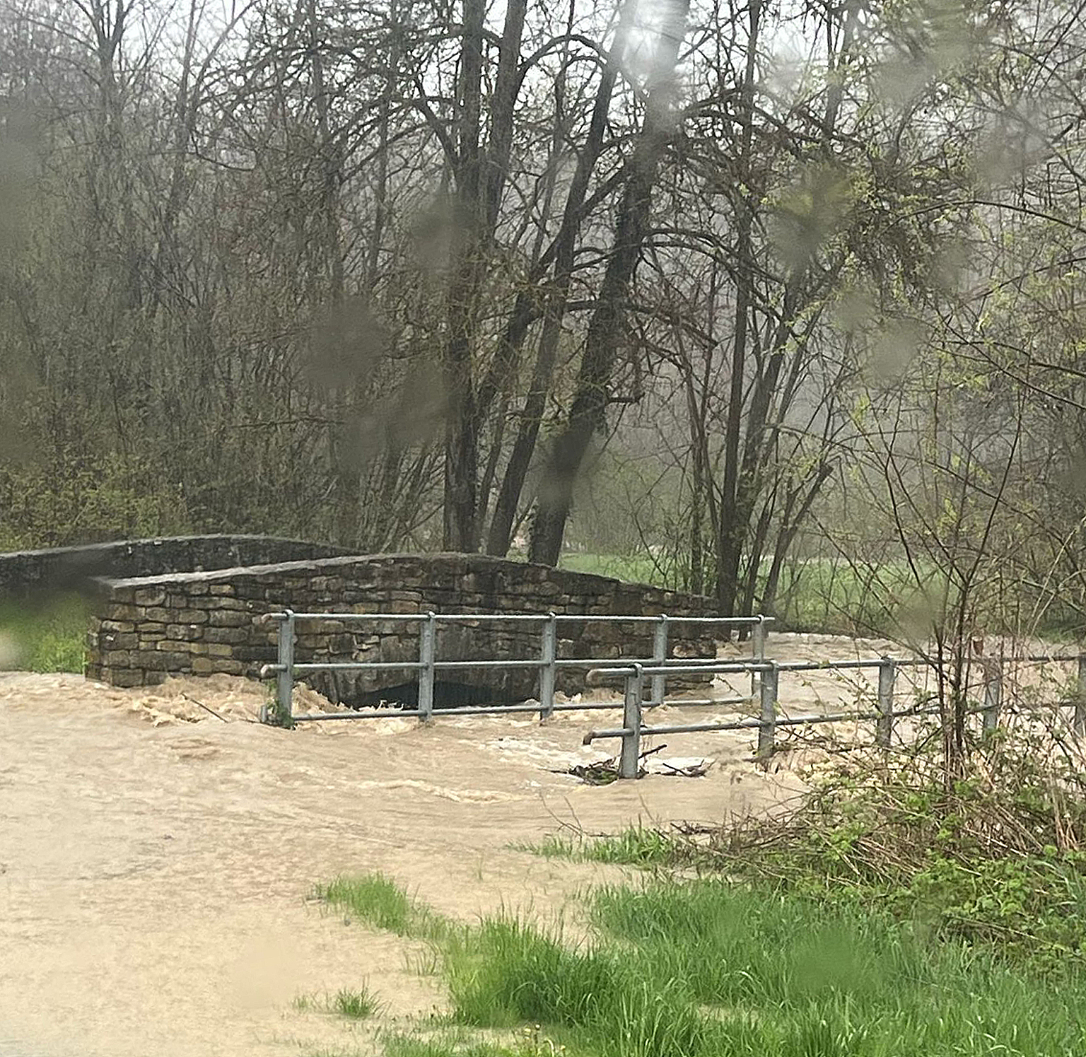 Dan melden bewoners op de dorpsapp dat de rivier de Belbo buiten z'n oevers is getreden en het water over de weg ernaast stroomt. De Nederlanders die vlak aan de rivier wonen, zijn niet thuis, anders hadden ze hun huis niet eens meer uit gekund.
