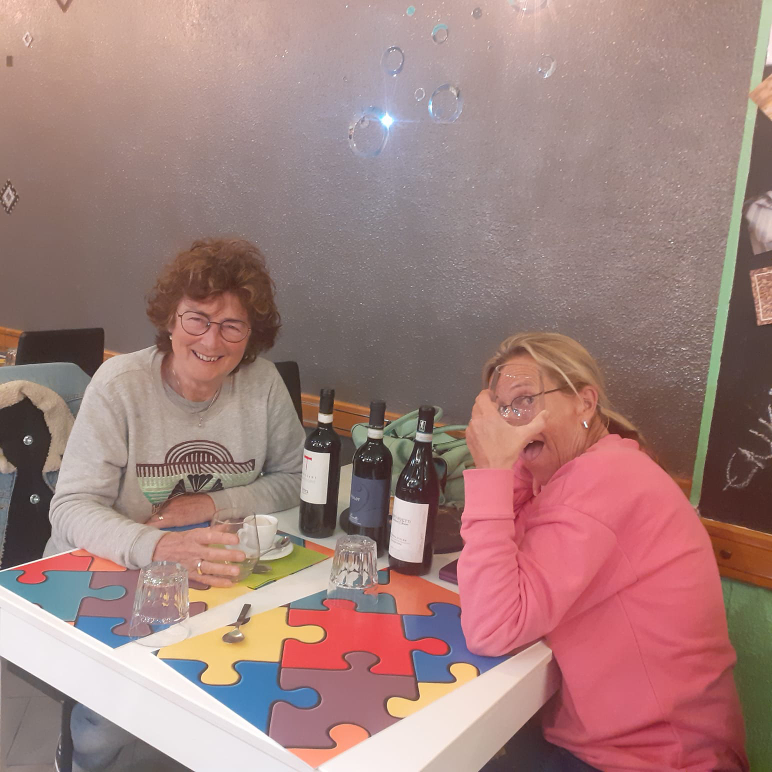 We nemen veel tijd voor de aperativo want er is veel bij te praten. Ook Silvio komt binnen. Veel mensen herkennen haar van de jaren dat ze hier woonde. Samen met haar vrouw had ze ooit zelfs een Indonesisch restaurant in Murazzano.