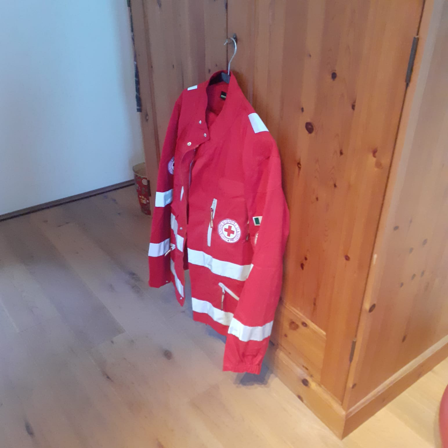 Zaterdagmorgen moest ik me al om half negen op het kantoor in Monesiglio melden om een Rode Kruis-pak uit te zoeken. Als ik mezelf even later in zo'n rode veel te grote broek en jas zie, heb ik even het idee dat ik in een toneelstuk zit. Maar dat zal wel overgaan als het echte werk gaat beginnen en...heel belangijk!...ik een héél klein steentje bijdraag aan de Italiaanse samenleving, want dat is toch waar ik het voor doe.