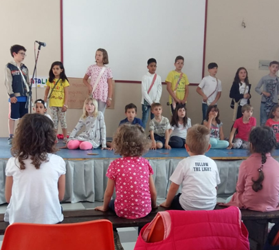 Ik ga mee met Grazia. Haar kleinkinderen Mattia en Guglia hebben ook iets ingestudeerd en bovendien vind ik het ook leuk me een middag tussen de kinderen, ouders en grootouders van ons dorp te begeven.
