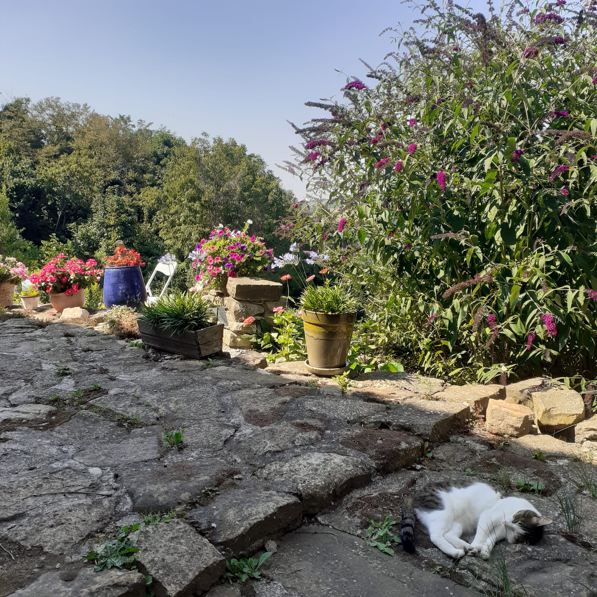 De poezen hebben een heerlijke zomer. Overdag liggen ze uitgeteld op het terras of in één van de tuinstoelen en moet ik ze eruit gooien om zelf te kunnen zitten.