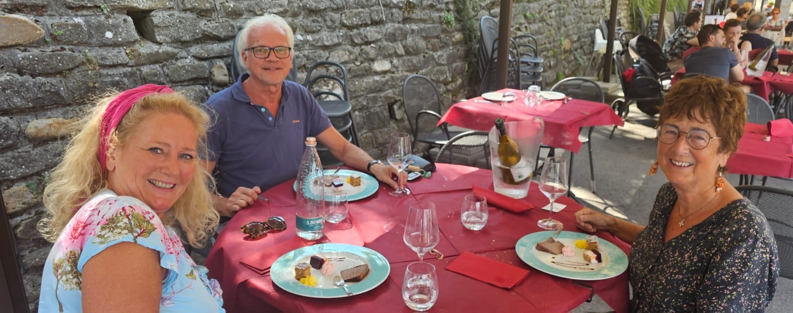 Die horen al jaren verhalen over mij en wilden nu zelf wel eens zien waar ik uithang. Ze waren zeer onder de indruk van deze streek en ook van het heerlijke eten hier. We hebben ons buikje weer meer dan rond gegeten bij Lele in Murazzano.
