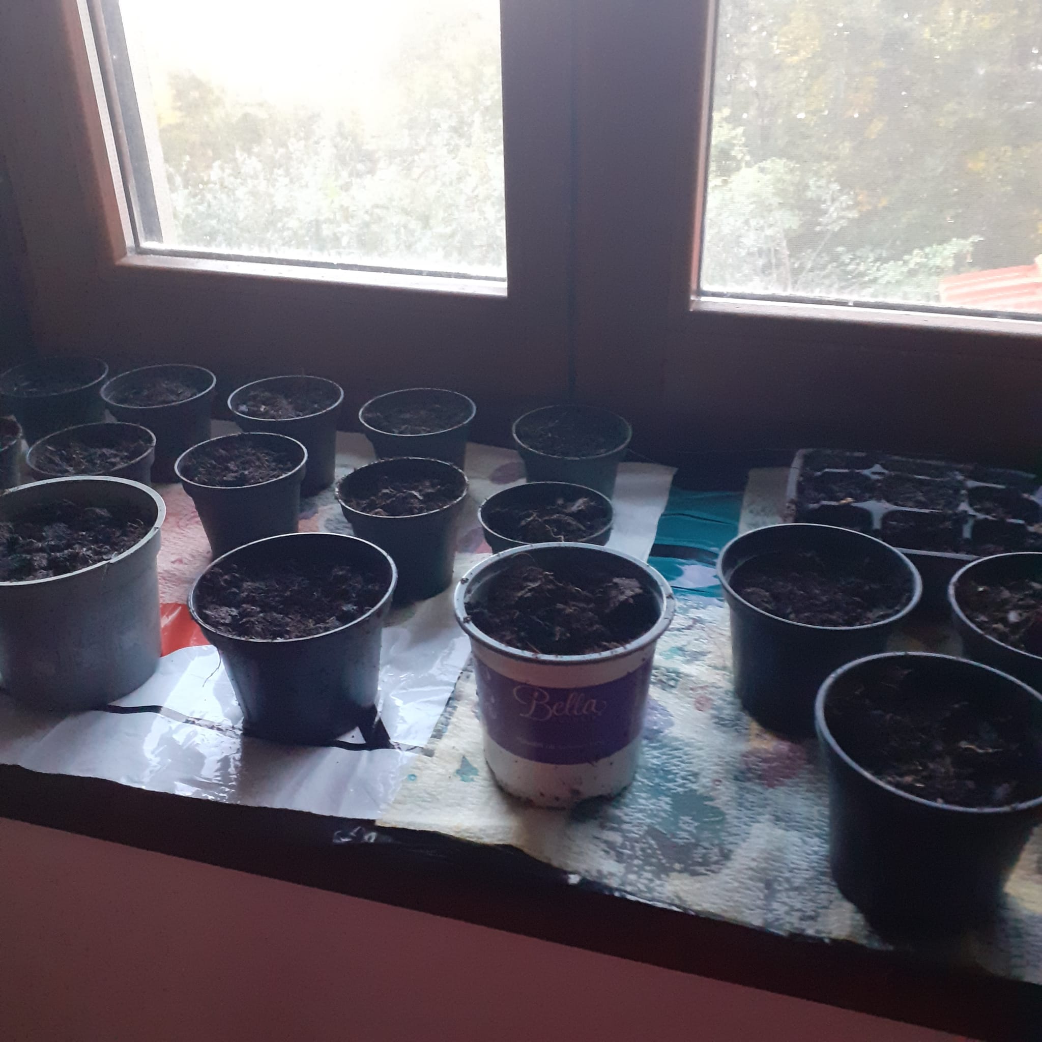 Ik zette ze boven in de vensterbank van de logeerkamer. Achter het raam, in het licht, het zal mij benieuwen of er iets op komt.