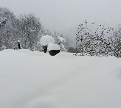 Er is deze keer al heel wat meer gevallen dan een maand geleden op die eerste sneeuwdag. Ik denk dat er in mijn tuin inmiddels wel een meter sneeuw ligt.