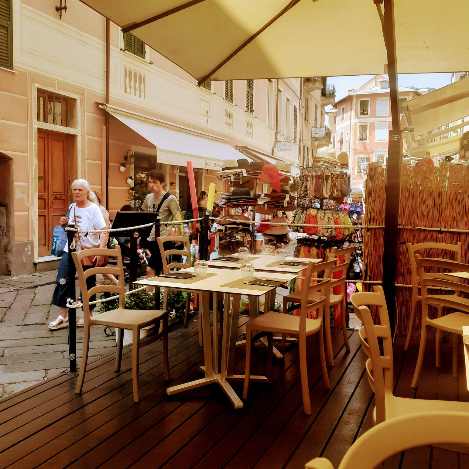 Om kwart over acht reed ik over de boulevard van Finale. Je zag de zee haast niet door de hoeveelheid marktkramen. En wat zijn Italianen toch altijd matineus, want het was al aardig druk. Het zat mee, ik vond meteen een parkeerplaats.
