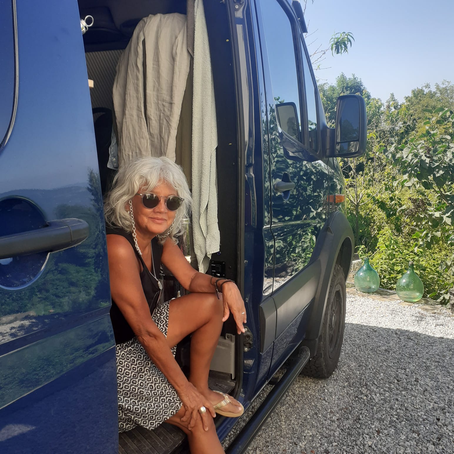 Een paar jaar geleden heeft ze haar leven totaal omgegooid. Ze verkocht haar huis in Hilversum en trekt sindsdien rond in een camper. Of eigenlijk mag ik dat van haar niet zeggen: het is een bus.