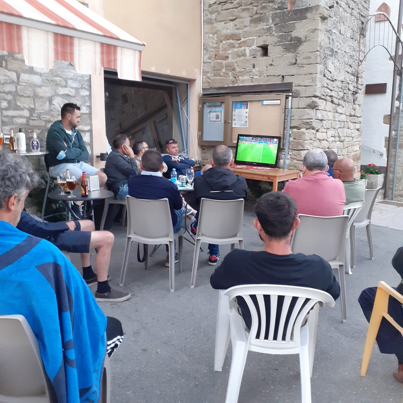 Zoals vrijdag toen de Italianen van de Belgen wonnen. Op de piazza zat het hele dorp voor een televisie die Rino daar had neergezet. Na afloop kuierde ik naar huis. De buren stonden in de tuin en Edoardo schreeuwde: "Waar blijven nou de toeterende auto's met vlaggen?"