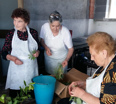 Ondertussen zit ik met een groepje vrouwen aardappels te schillen en groente schoon te maken. Ze vertellen over vroeger. Er zijn geen jonge vrouwen in de keuken. Aan het werk? Of ontbreekt bij jonge Italiaanse vrouwen de ambitie om in de keukensloffen van hun moeders en oma's te gaan staan?