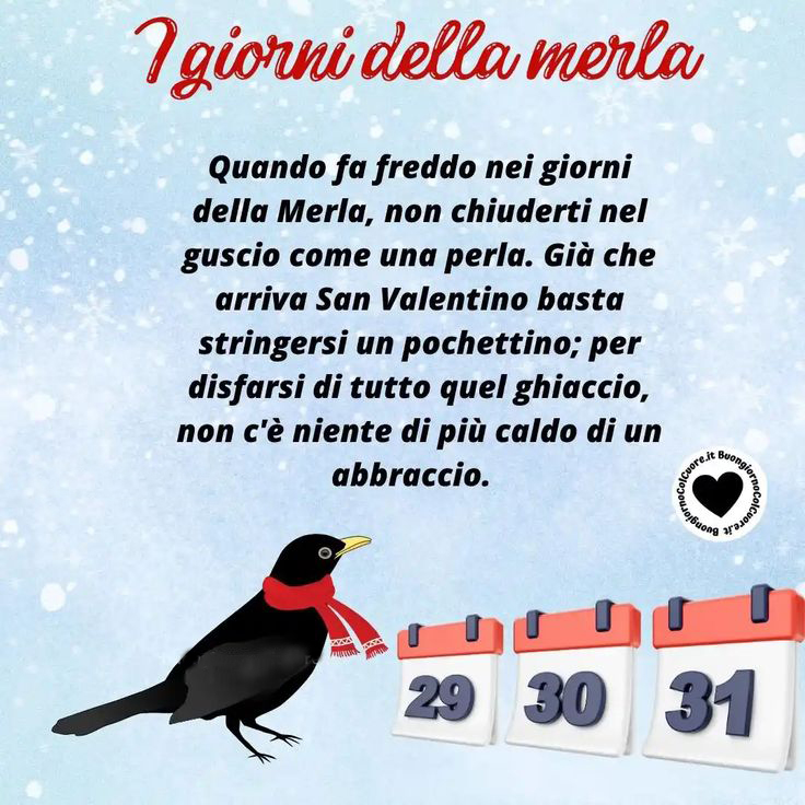 uitdrukking. De dagen van de merel vallen op 29, 30 en 31 januari.