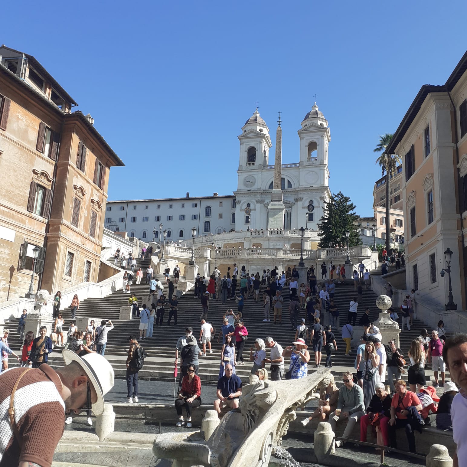 Ik heb Rome nog nooit zo druk meegemaakt. Gistermorgen moest ik me langs een muur van mensen worstelen, vier rijen dik, allemaal stonden ze met hun rug naar elkaar toe, mobieltjes geheven en allemaal turend naar een bepaald punt... ik keek wat er te zien was wat zo massaal gefotografeerd moest worden. Ik kon het niet ontdekken.